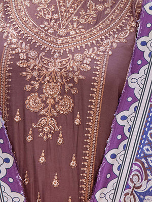 Adan's Libas Embroidered Linen Suit with Wool Shawl - Brown