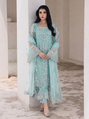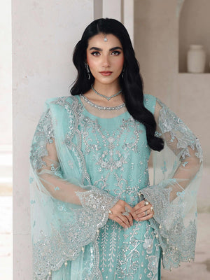 Ally's Aqua Embroidered Net Suit (AL-4256)