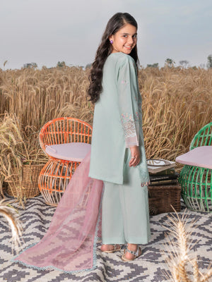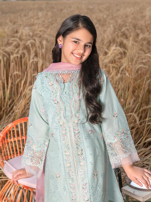 Ally's Kids Aqua Blue Embroidered Chikankari Suit (AL-1043)