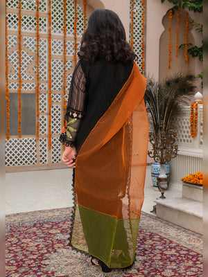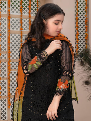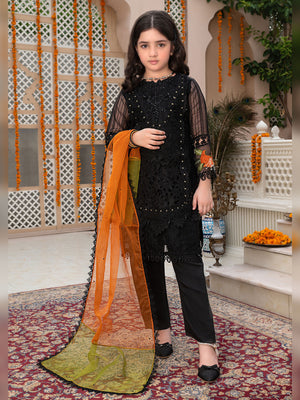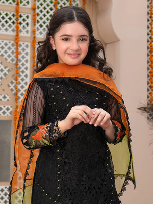 Ally's Kids Black Embroidered Organza Suit (AL-3969)