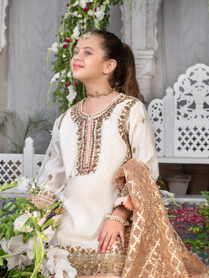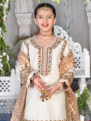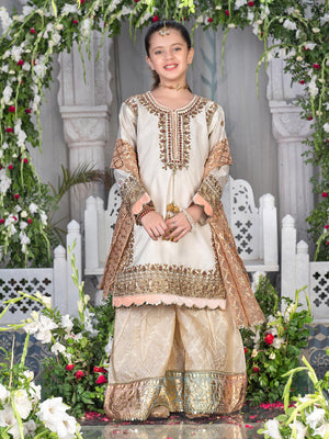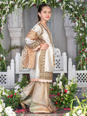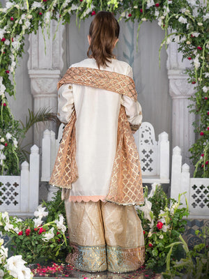 Ally's Kids Off-White Raw Silk Suit with Sharara (AR-83)