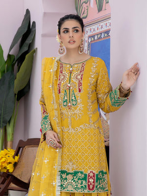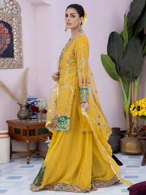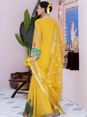 Ally's "Mehbooba" Yellow Luxury Organza Sharara Suit (AL-3391)