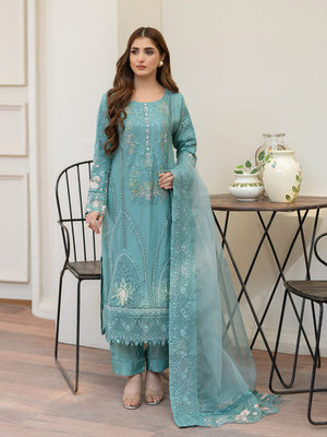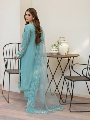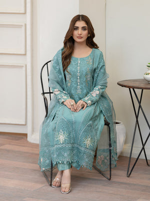 Aqua Blue Luxury Embroidered Chiffon Suit