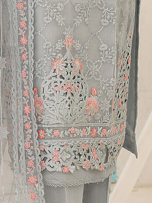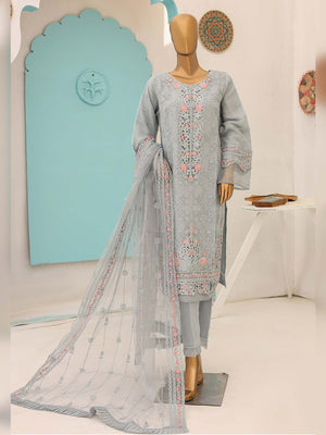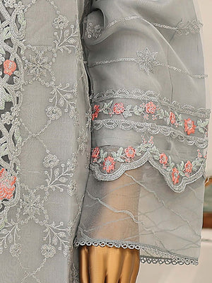Bin Saeed Luxury Embroidered Organza Suit - Ice Blue