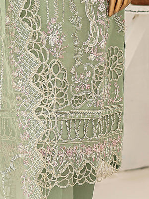 Bin Saeed Luxury Embroidered Organza Suit - Light Green