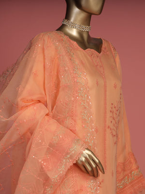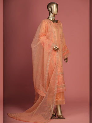 The Bin Saeed "Shaifoon" Luxury Peach Suit is a ready-to-wear outfit with intricate details. The suit is crafted from high quality chiffon, featuring a stunning embroidery design that is sure to turn heads. The fancy organza dupatta completes this look, elevating it to luxurious heights. With the reliability and quality of Bin Saeed designer apparel, you know you'll be making a smart choice.