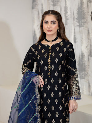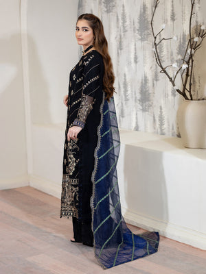 Black Luxury Embroidered Chiffon 3-Piece Suit