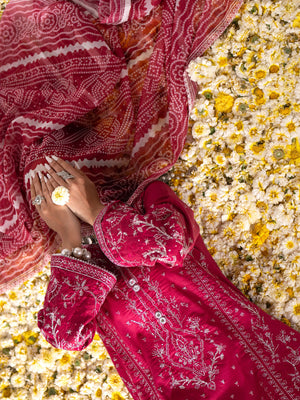- Embroidered Cotton Suit with Khadi Net Dupatta