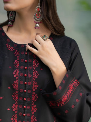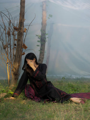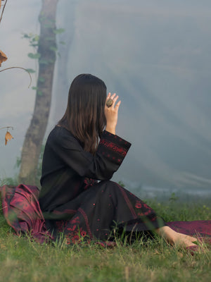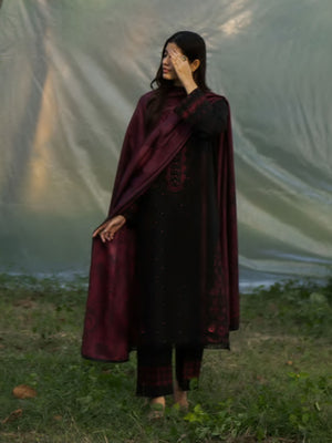 Casual Lite "Khunki" Premium Dhanak Suit with Pashmina Shawl - Black