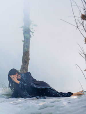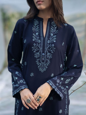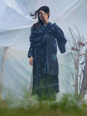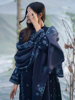 Casual Lite "Khunki" Premium Dhanak Suit with Pashmina Shawl - Navy Blue