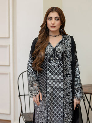 Elevate your wardrobe with this sophisticated 3-piece chiffon suit in a striking dark grey hue. This Eastern-ready outfit includes a fully lined kurta, tailored trousers, and an elegantly designed dupatta, making it an ideal choice for festive occasions and all-season events.