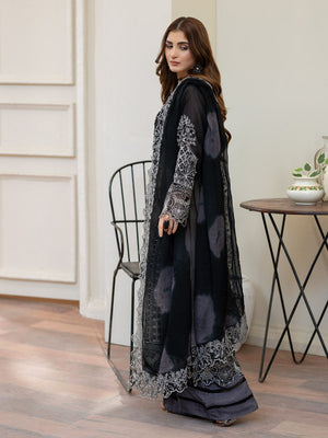 Charcoal Grey Embroidered Chiffon 3-Piece Suit