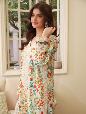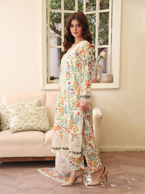 Cream and Pink Digital Print Lawn-Cotton 3-Piece Suit