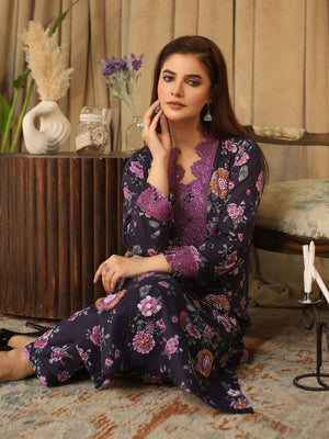 Deep Purple Digital Lawn-Cotton 3-Piece Suit