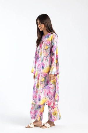 An enchanting composition is layered over this graceful ensemble portraying a rose pink shade. It depicts a contemporary silhouette shirt adorned with floral designs printed in mesmerizing hues. Paired with a trendy matching trouser, this aesthetically rich outfit is a great option for everyday events.