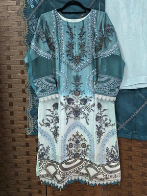 Green Heavy Embroidered Shaded Chiffon Suit with Silk Trouser