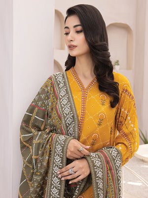 Lakhany Mustard Unstitched Pashmina Embroidered Suit (LG-ZH-0100)