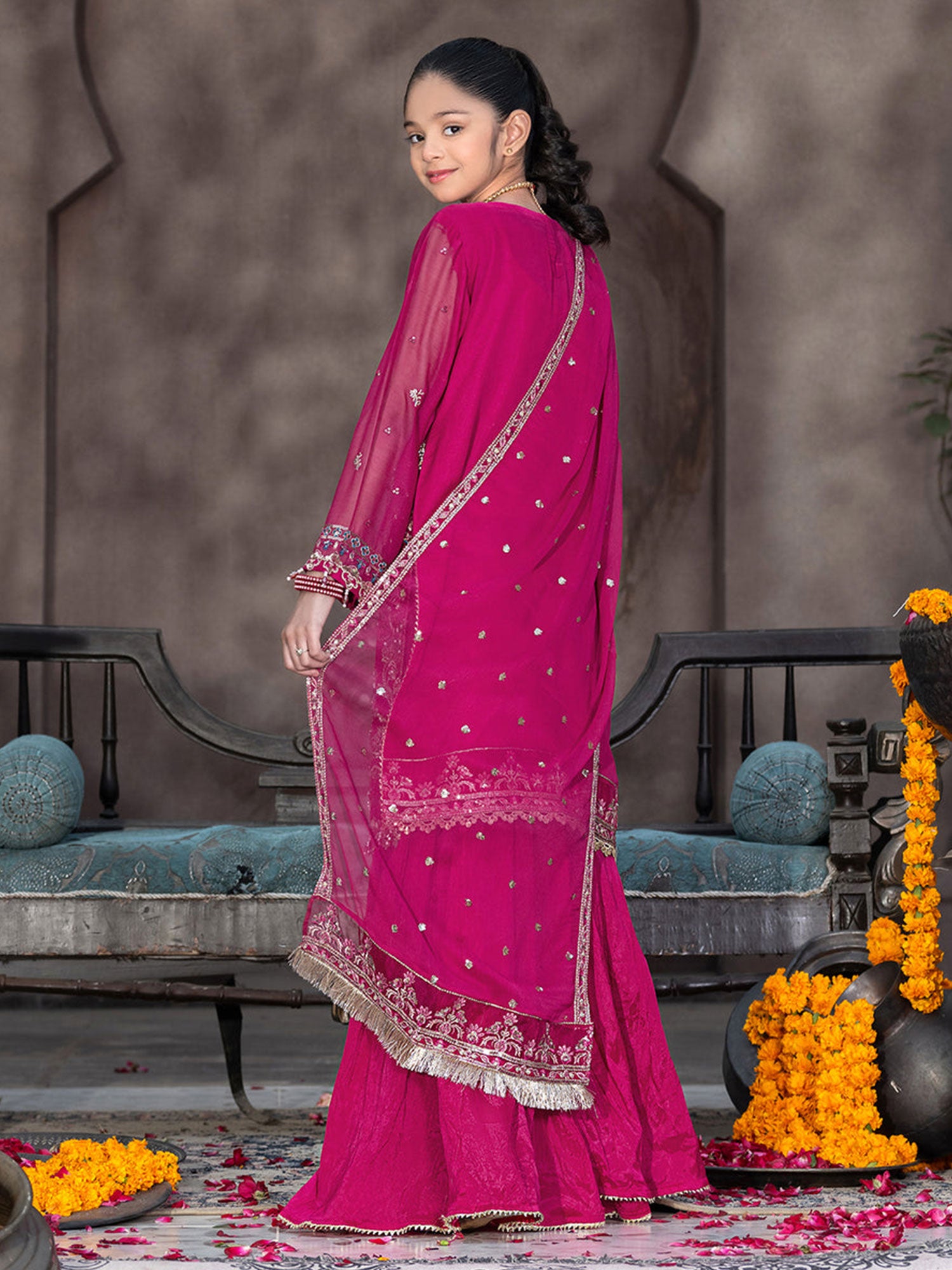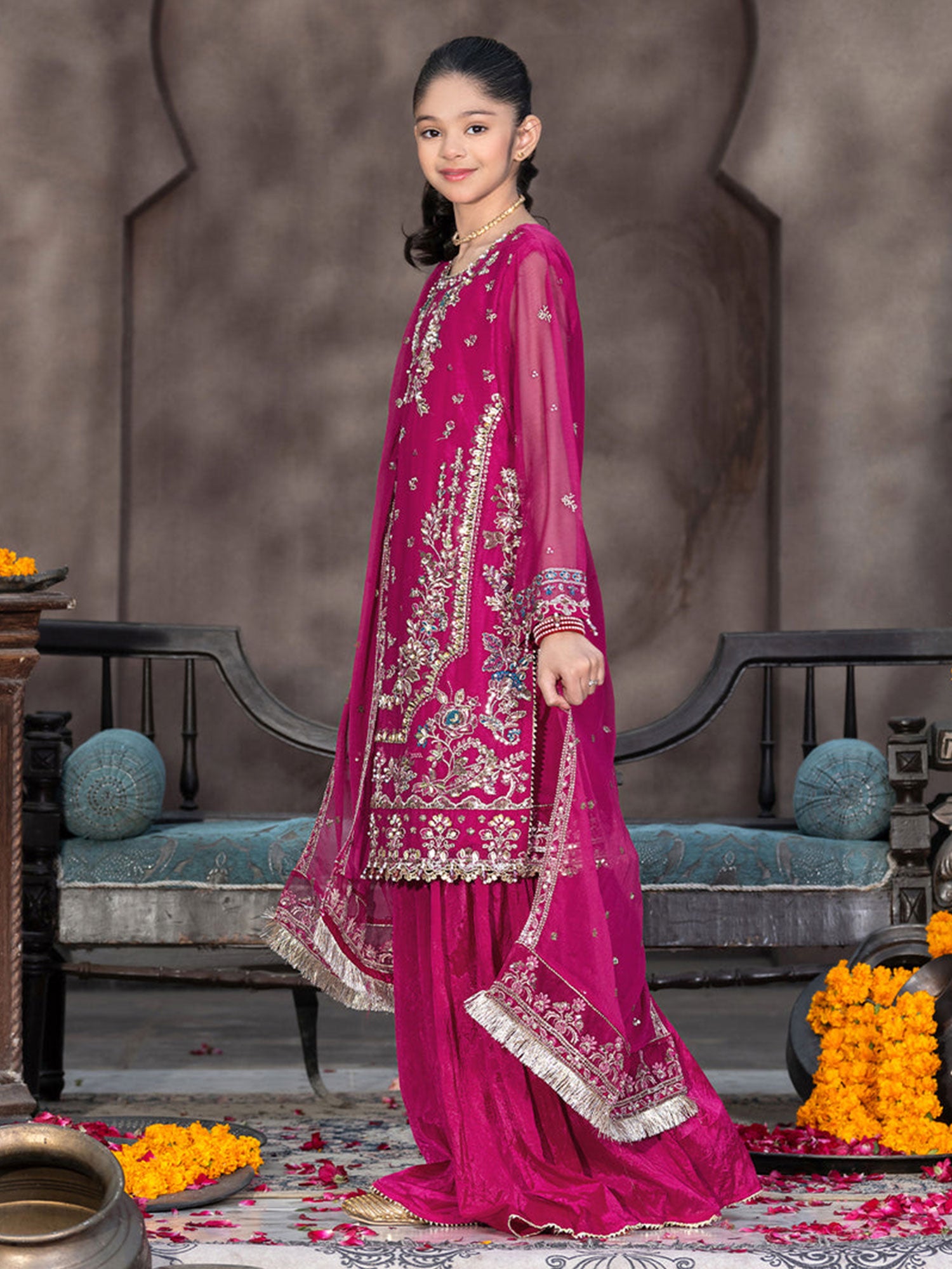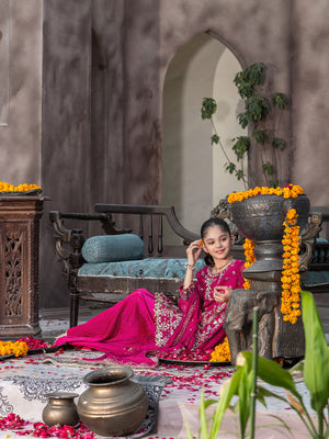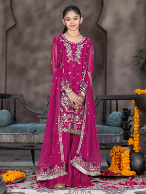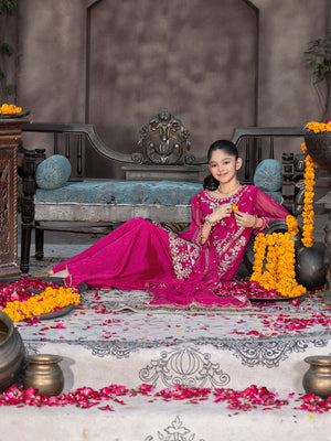 Ally's Kids Pink Lux Chiffon Suit with Gharara (AL-4281)