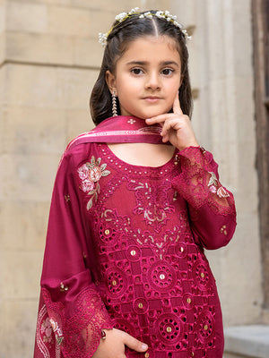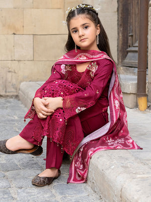 Ally's Kids Rose Pink Embroidered Linen Suit (AL-1111)