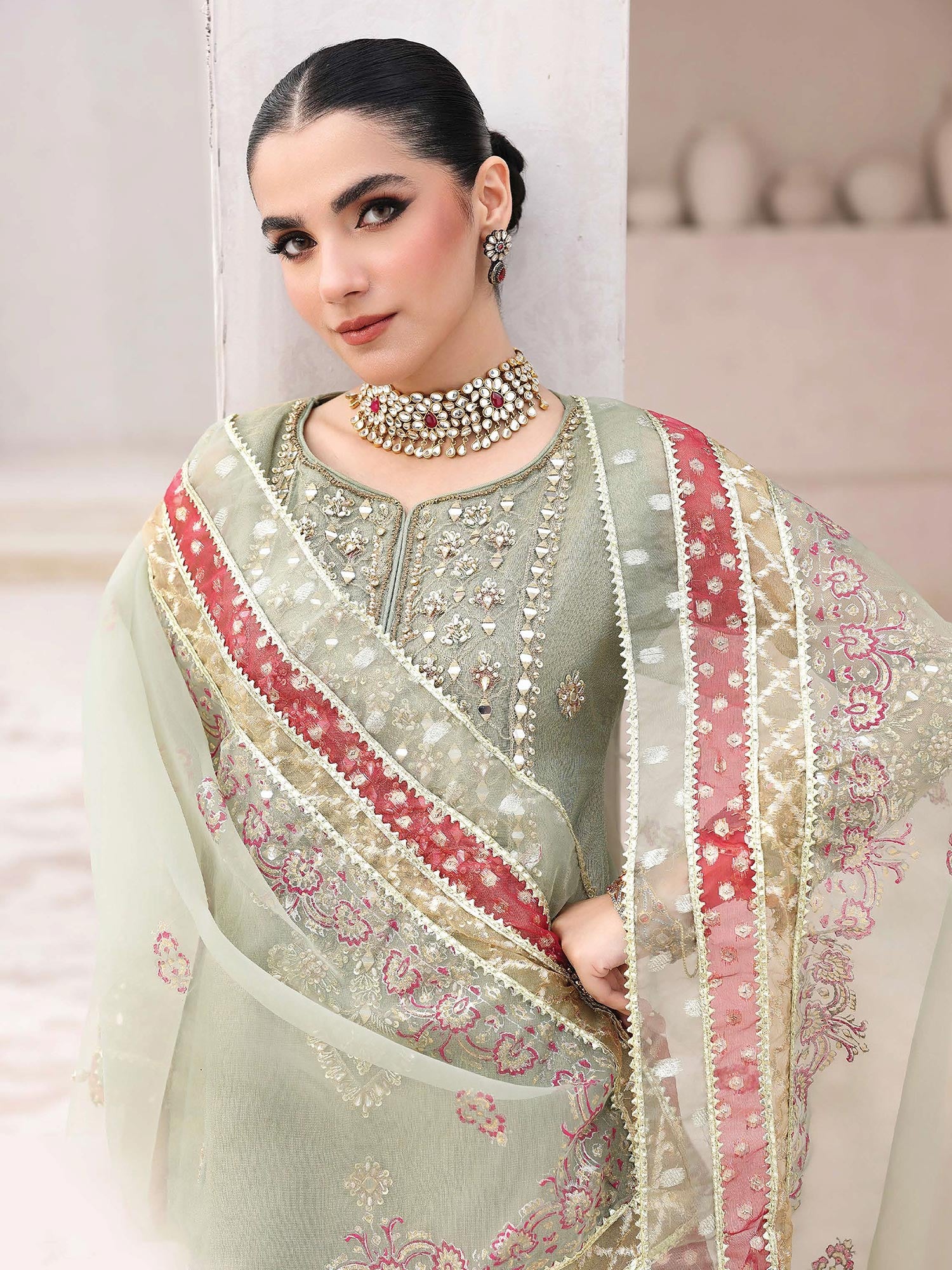 Ally's Pistachio Embroidered Net Suit with Gharara (AL-4148)