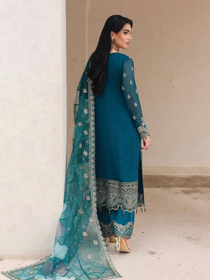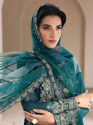 - Organza dupatta embellished with spangle embroidery and pearl accents