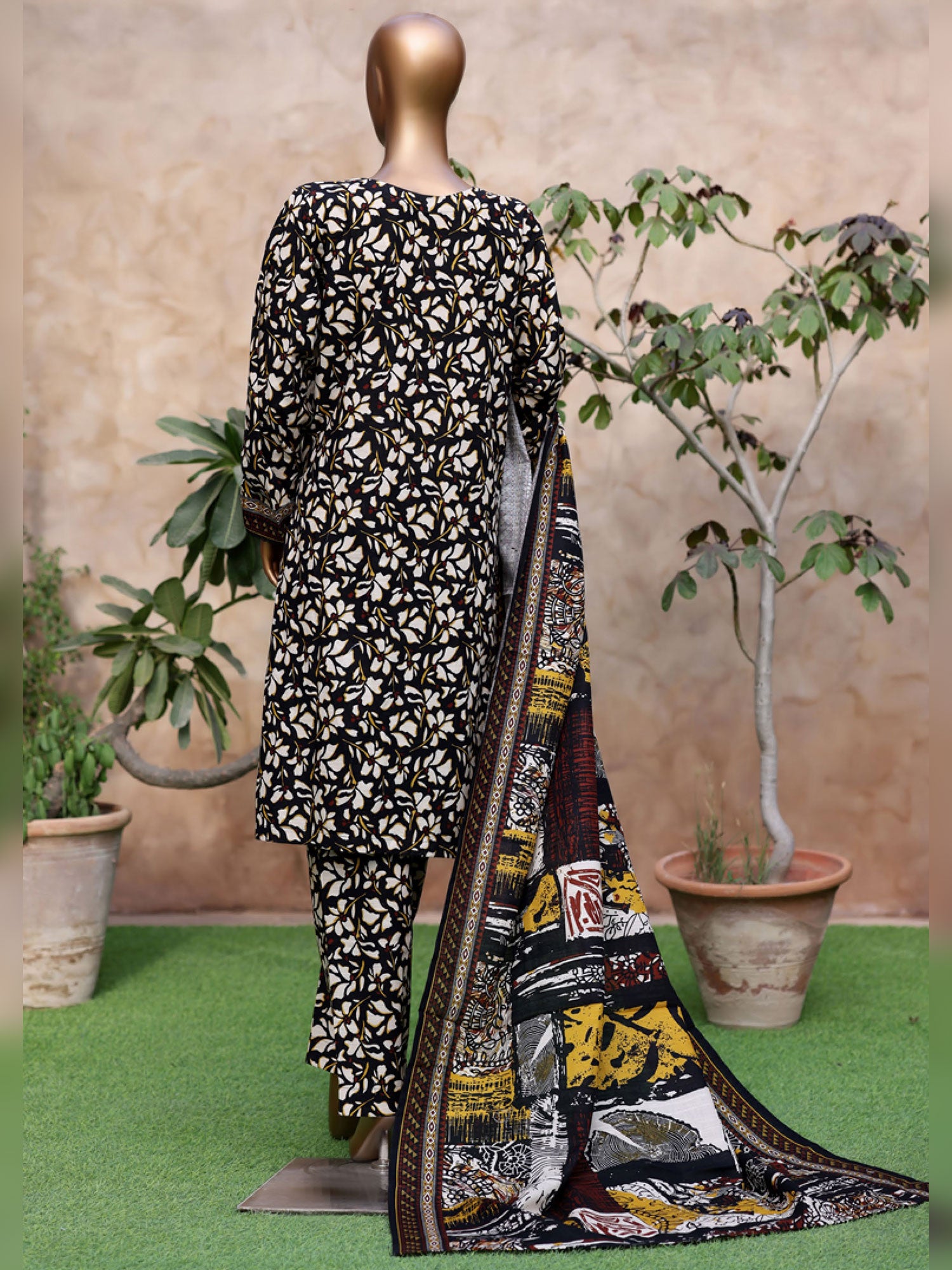 Bin Saeed Printed Khaddar 3-Piece Suit - Black