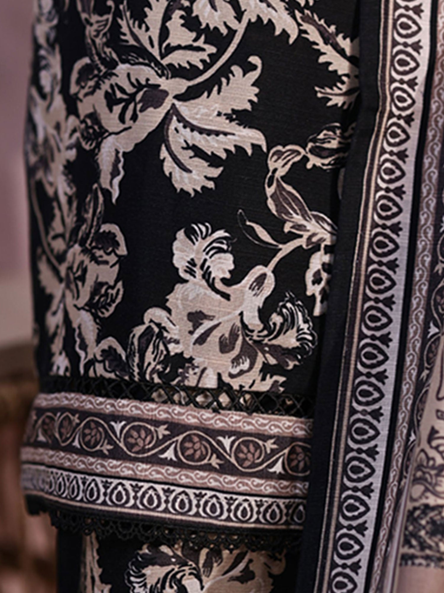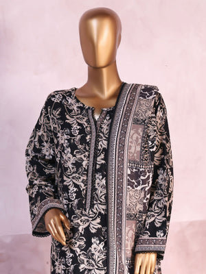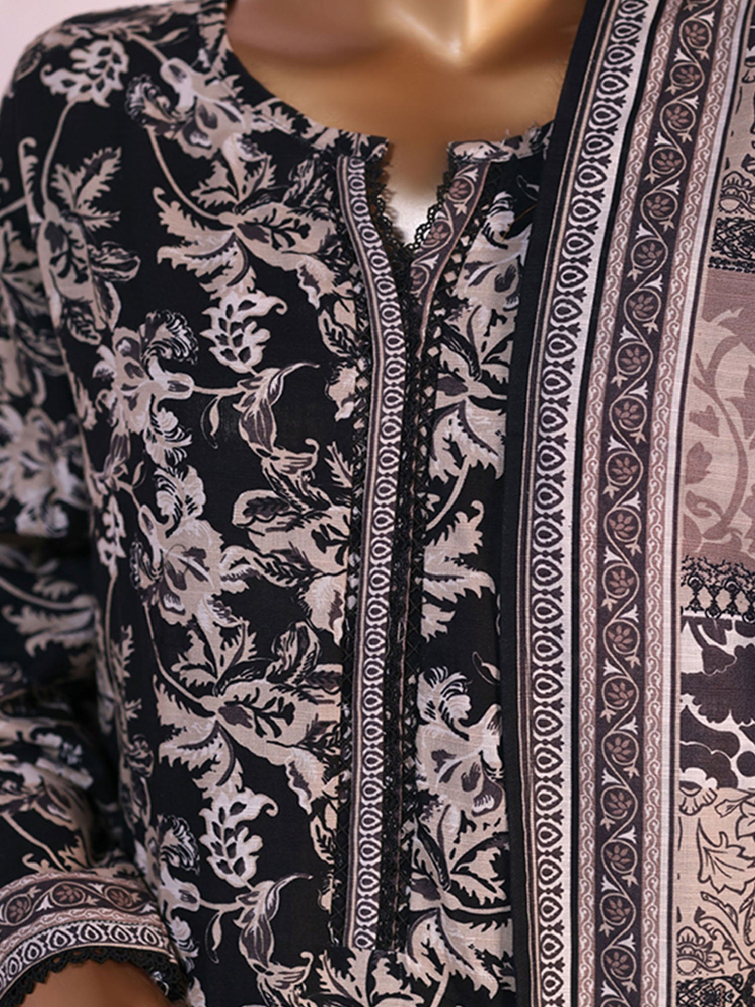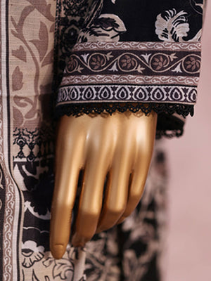 Bin Saeed Printed Khaddar 3-Piece Suit - Black & Beige