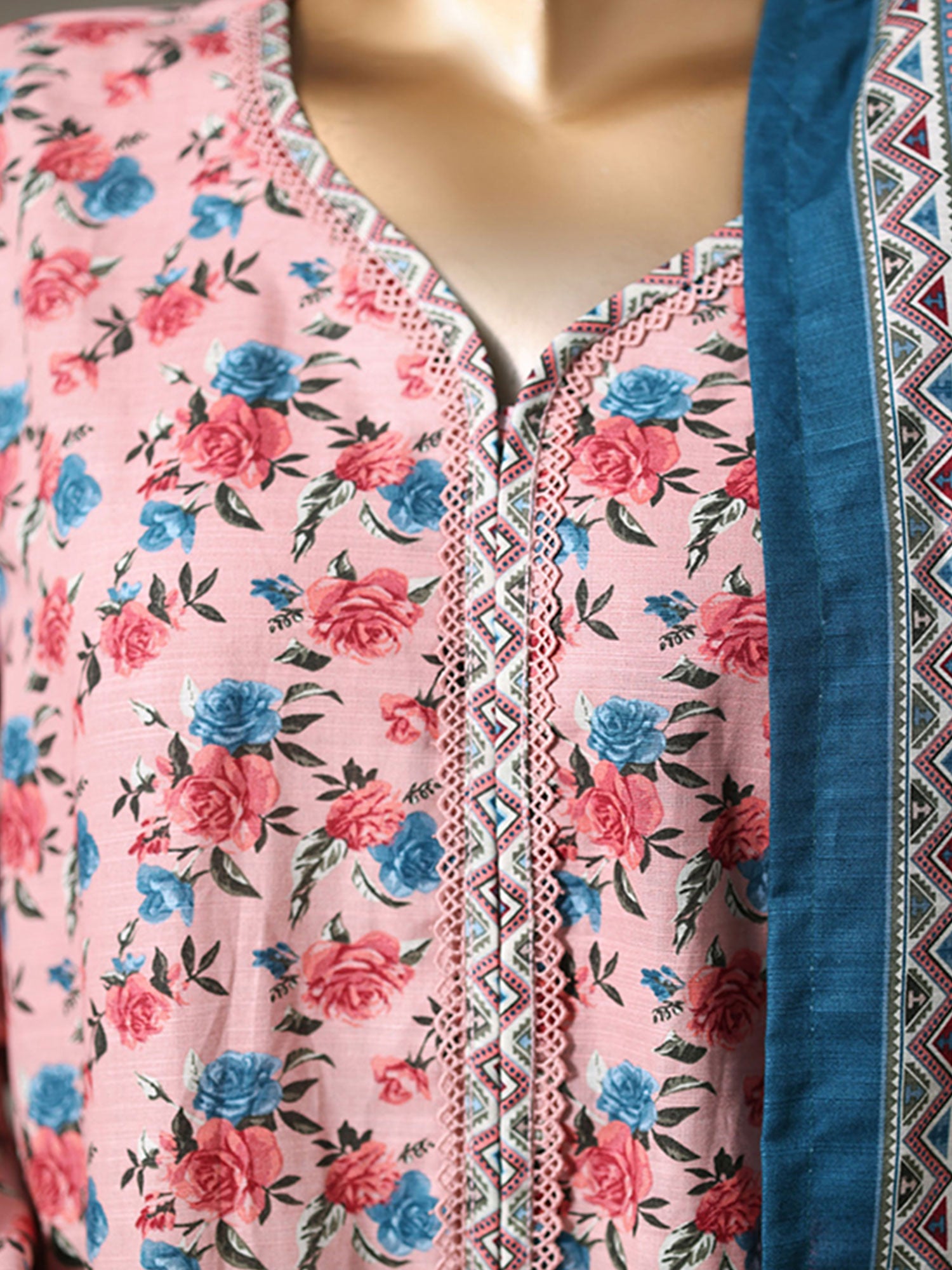 Bin Saeed Printed Khaddar 3-Piece Suit - Light Pink