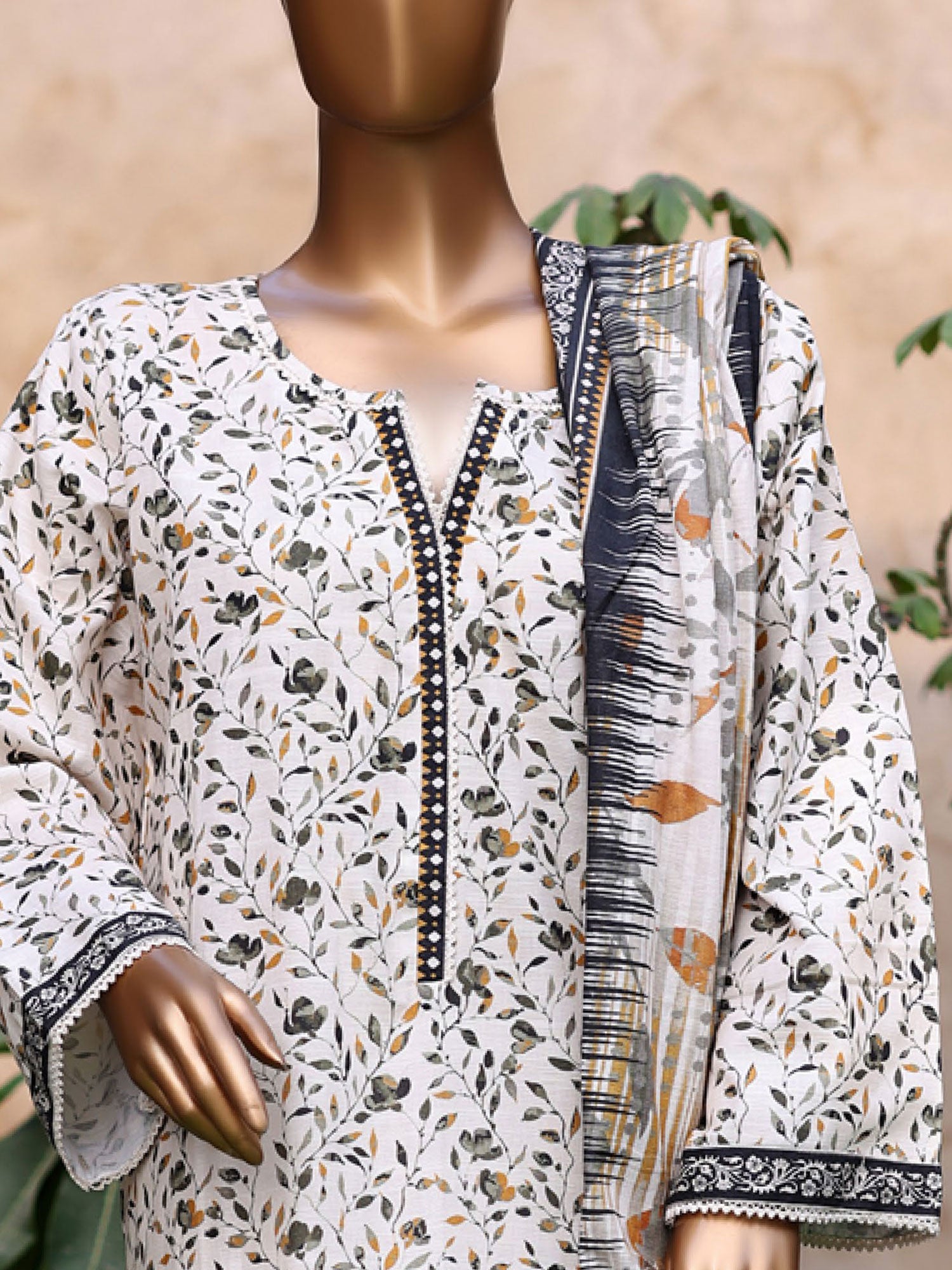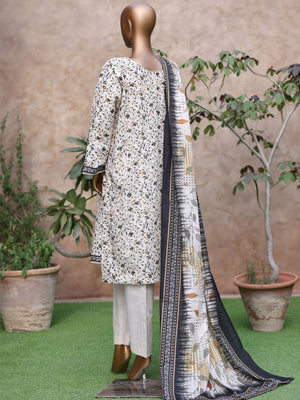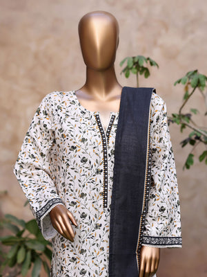 Bin Saeed Printed Khaddar 3-Piece Suit - White