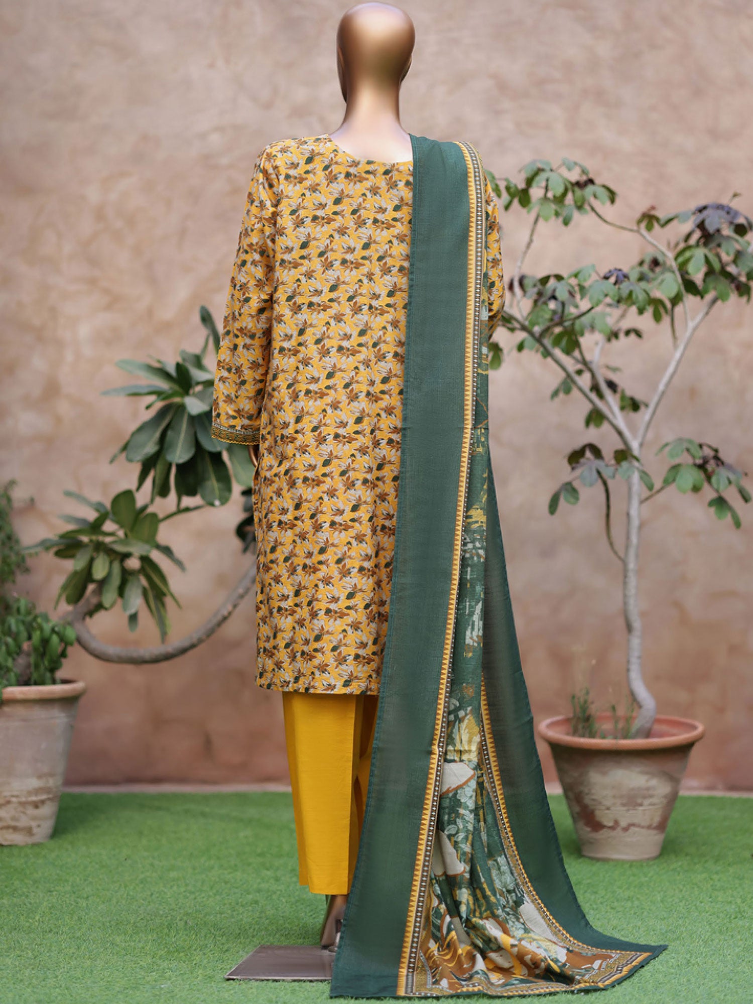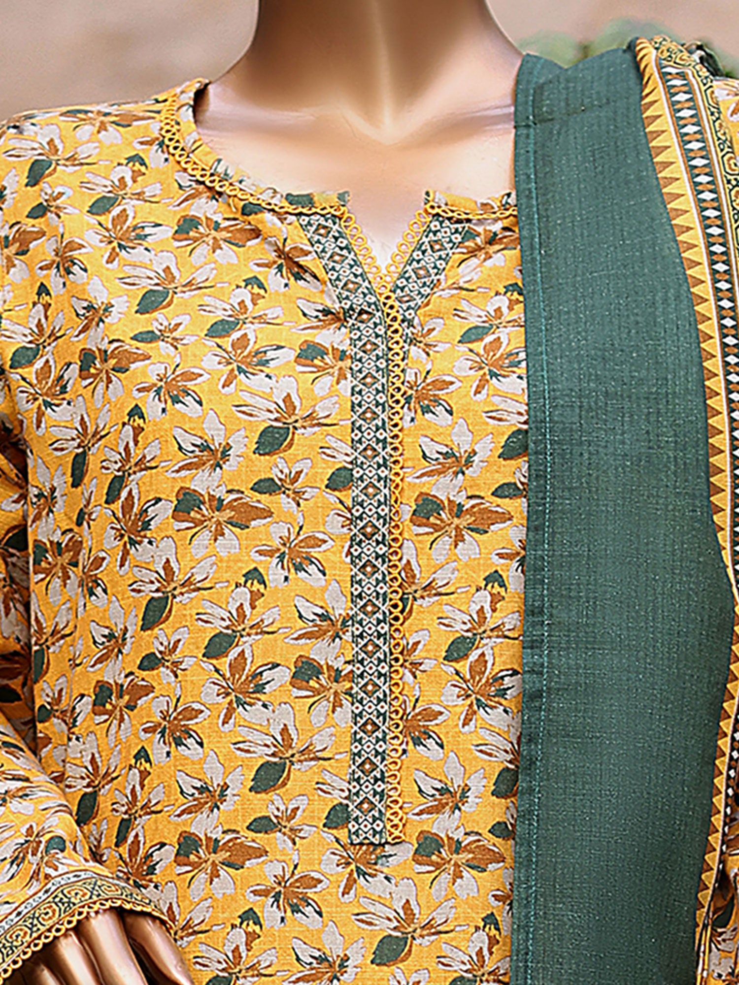 Bin Saeed Printed Khaddar 3-Piece Suit - Yellow