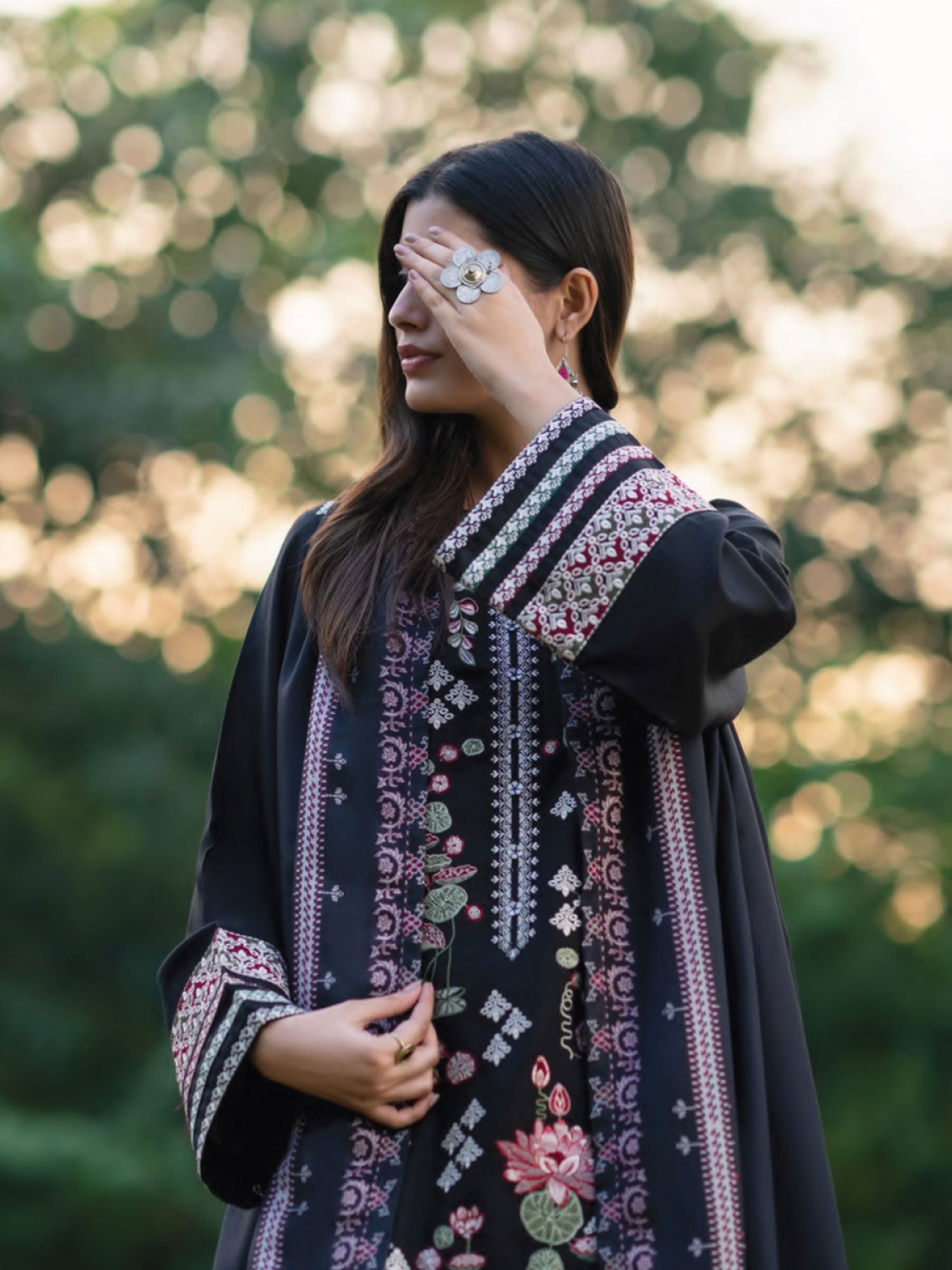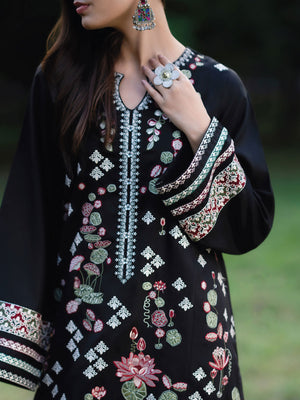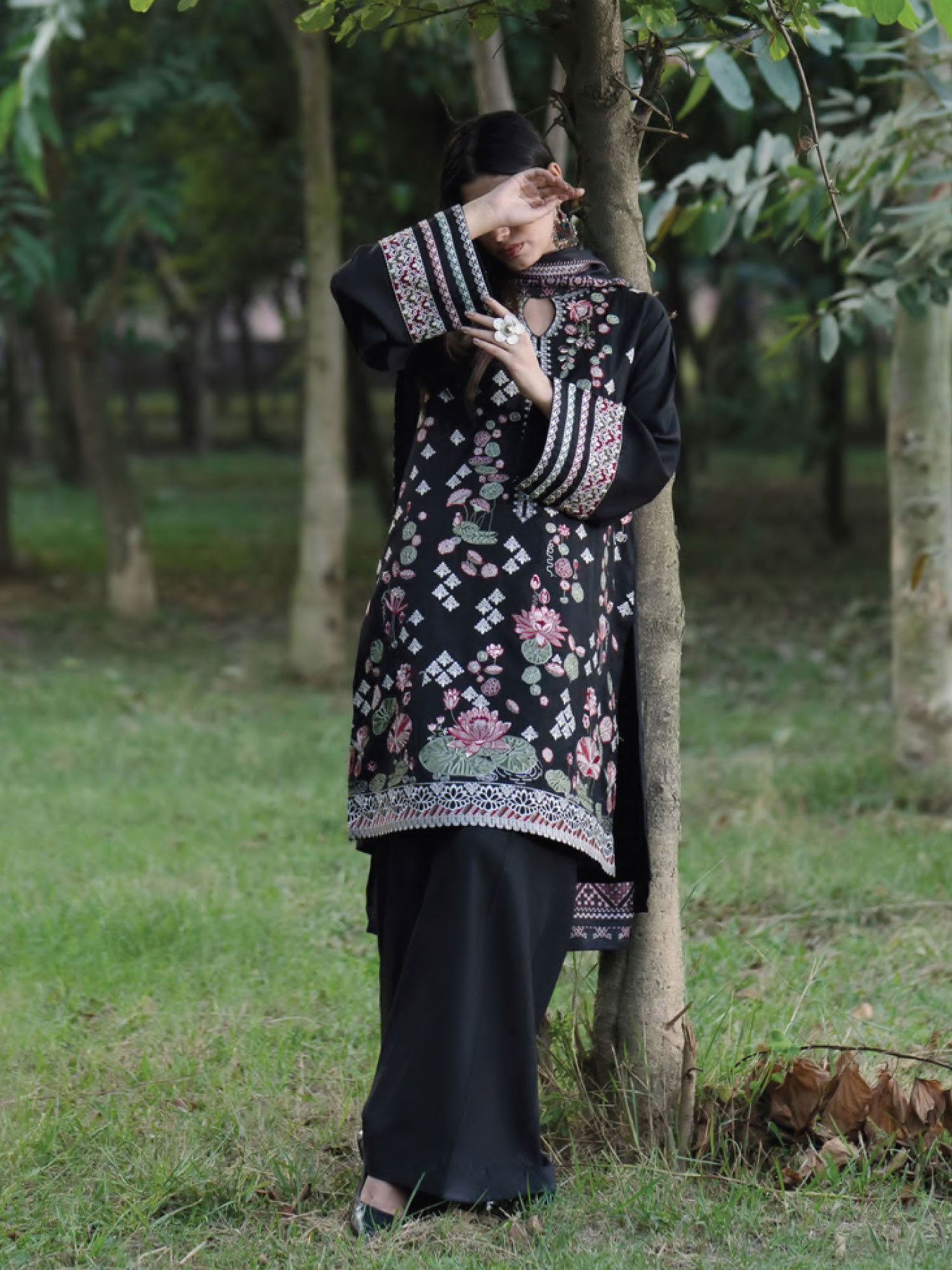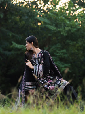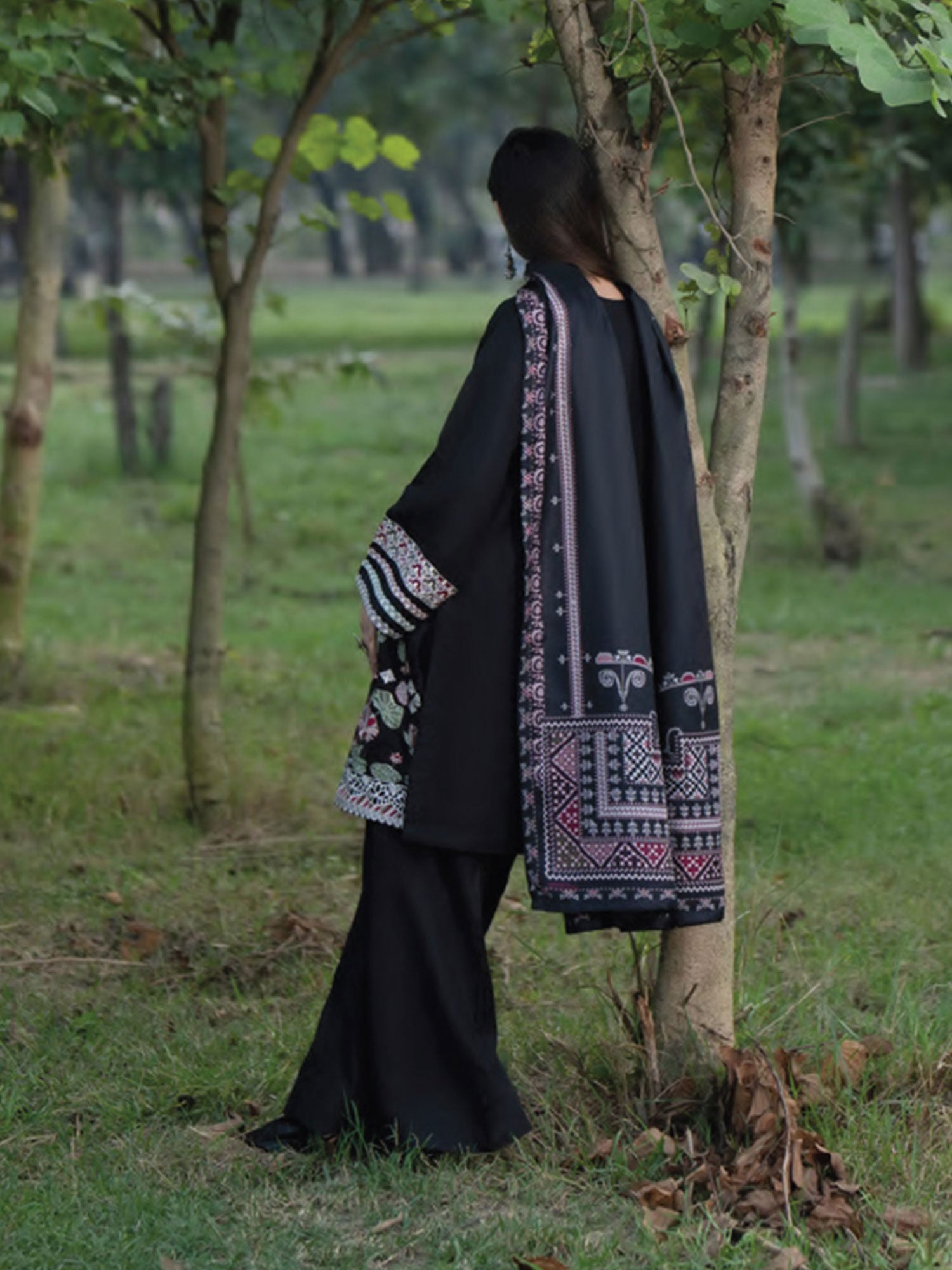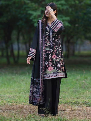 Casual Lite Winter Dhanak Suit with Pashmina Shawl - Black