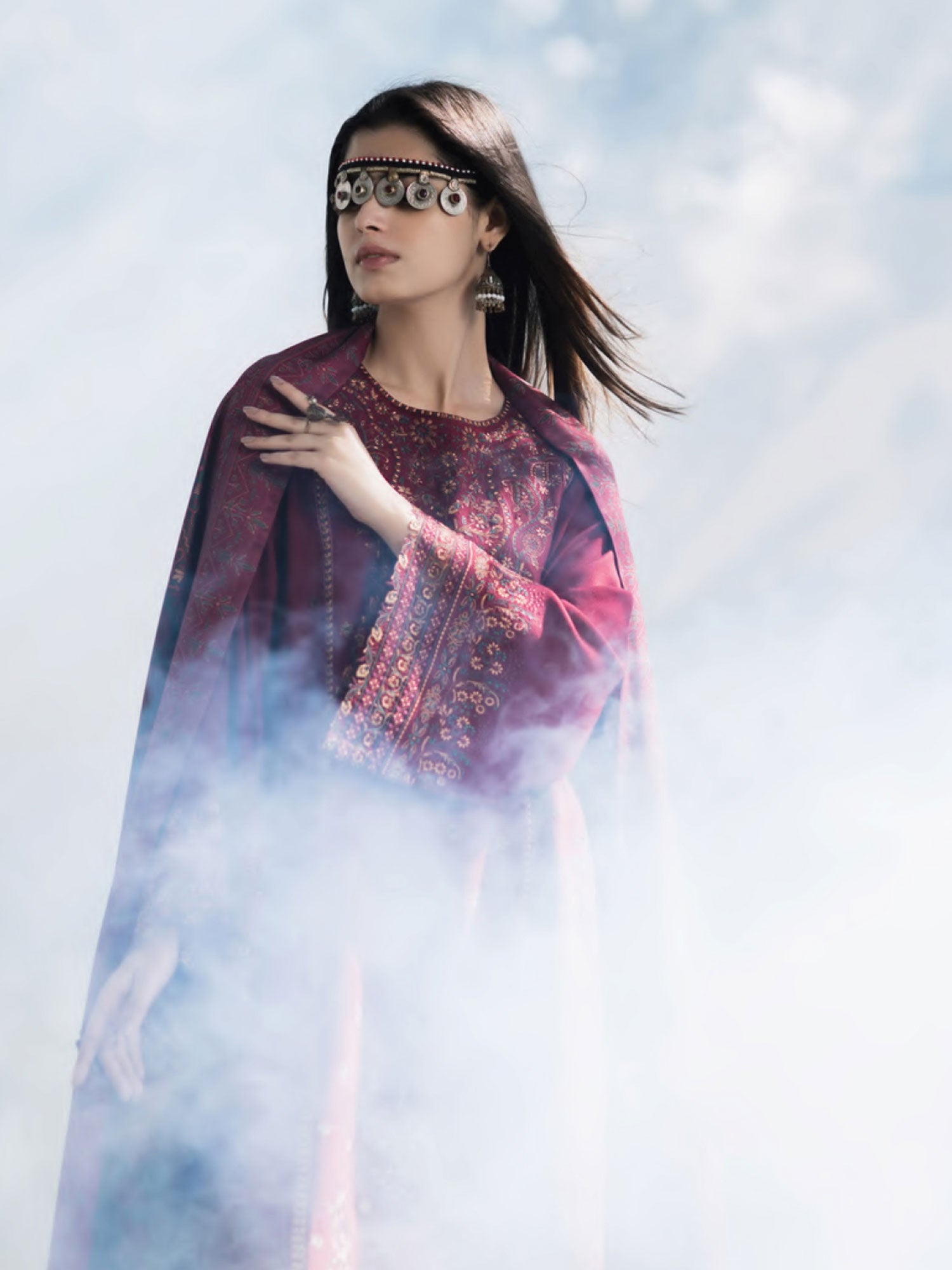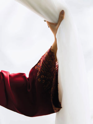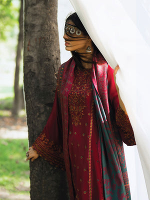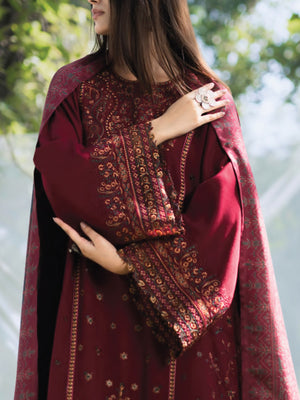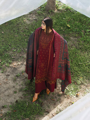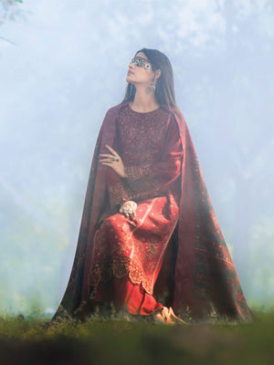 Casual Lite Winter Dhanak Suit with Pashmina Shawl - Dark Red