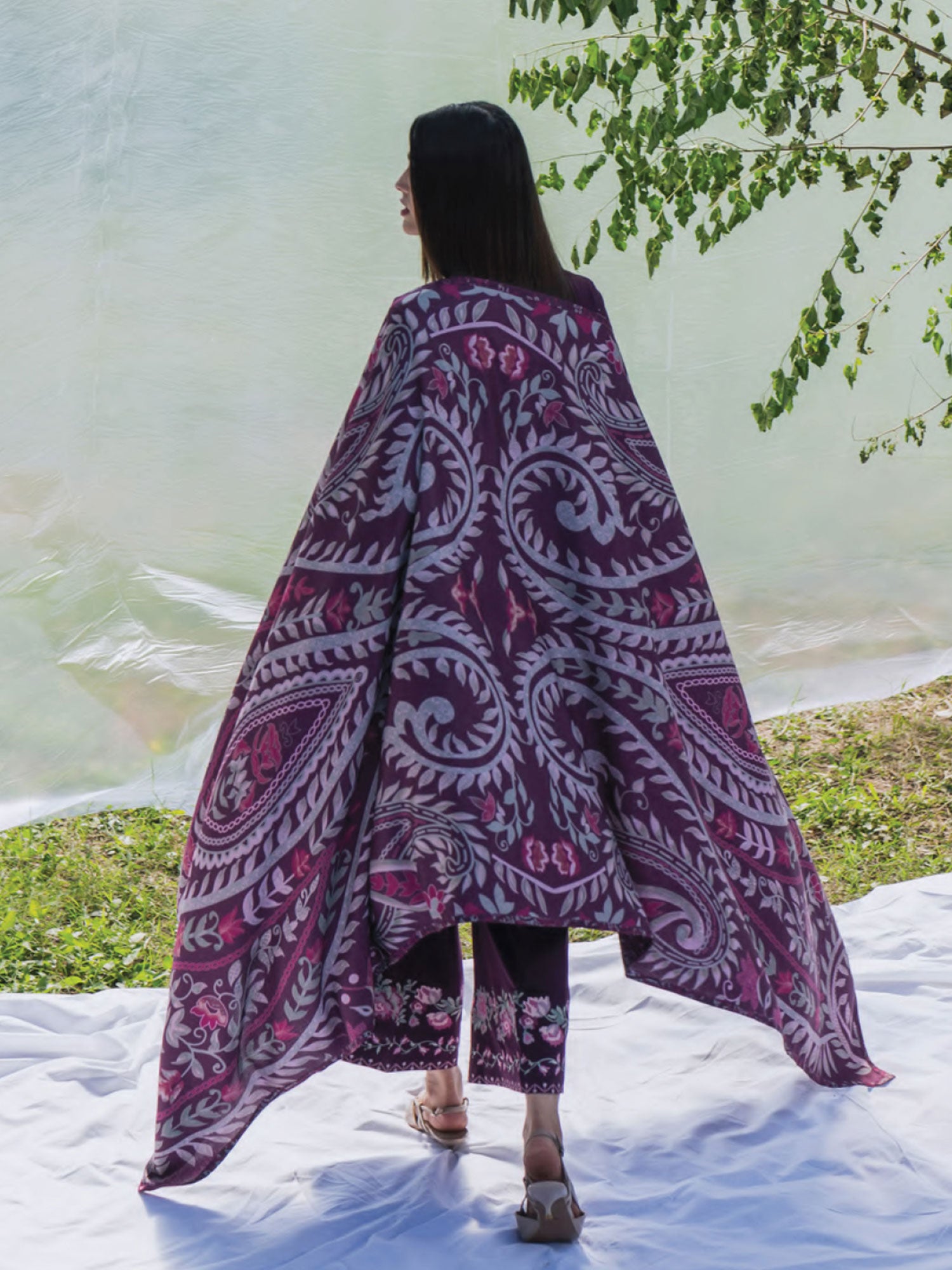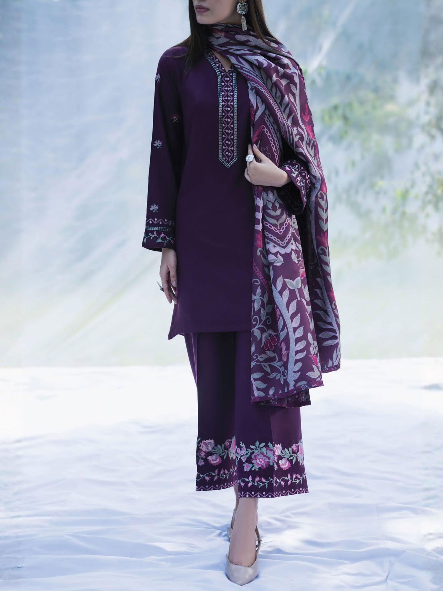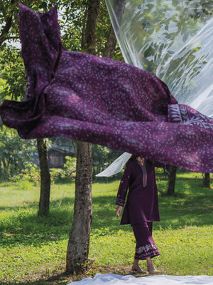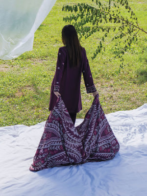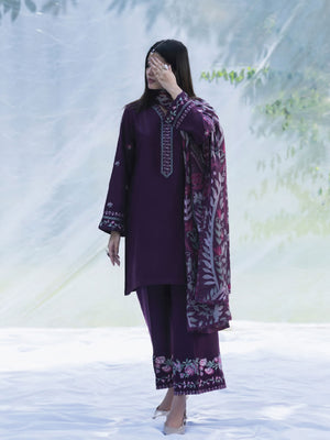 Casual Lite Winter Dhanak Suit with Pashmina Shawl - Purple