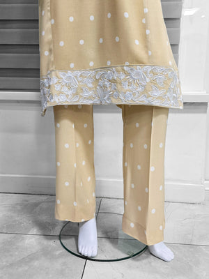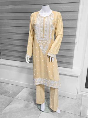 Embroidered Winter Georgette Casual 2-Piece Suit - Cream