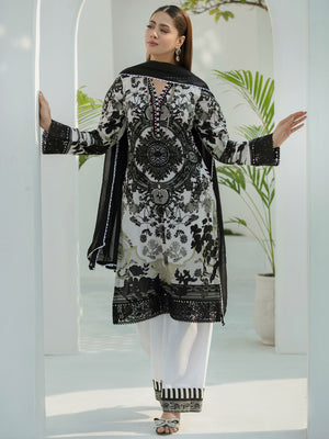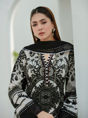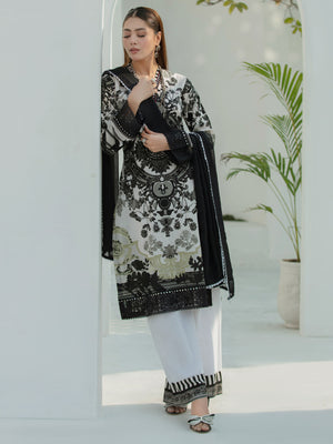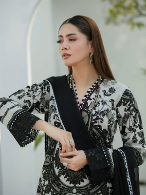 Heera's Black & White Embroidered Cambric Cotton Suit