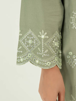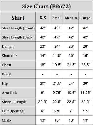 - Embroidery and immitation work on the front of shirt embellished with silver thread detailing