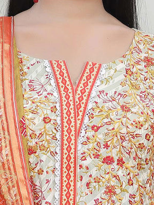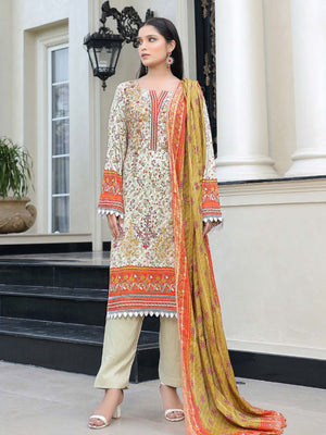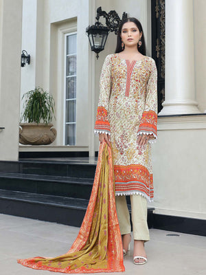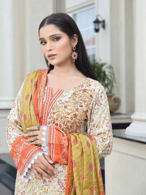 Munira Embroidered Winter Linen Suit (MSL-04) - Orange