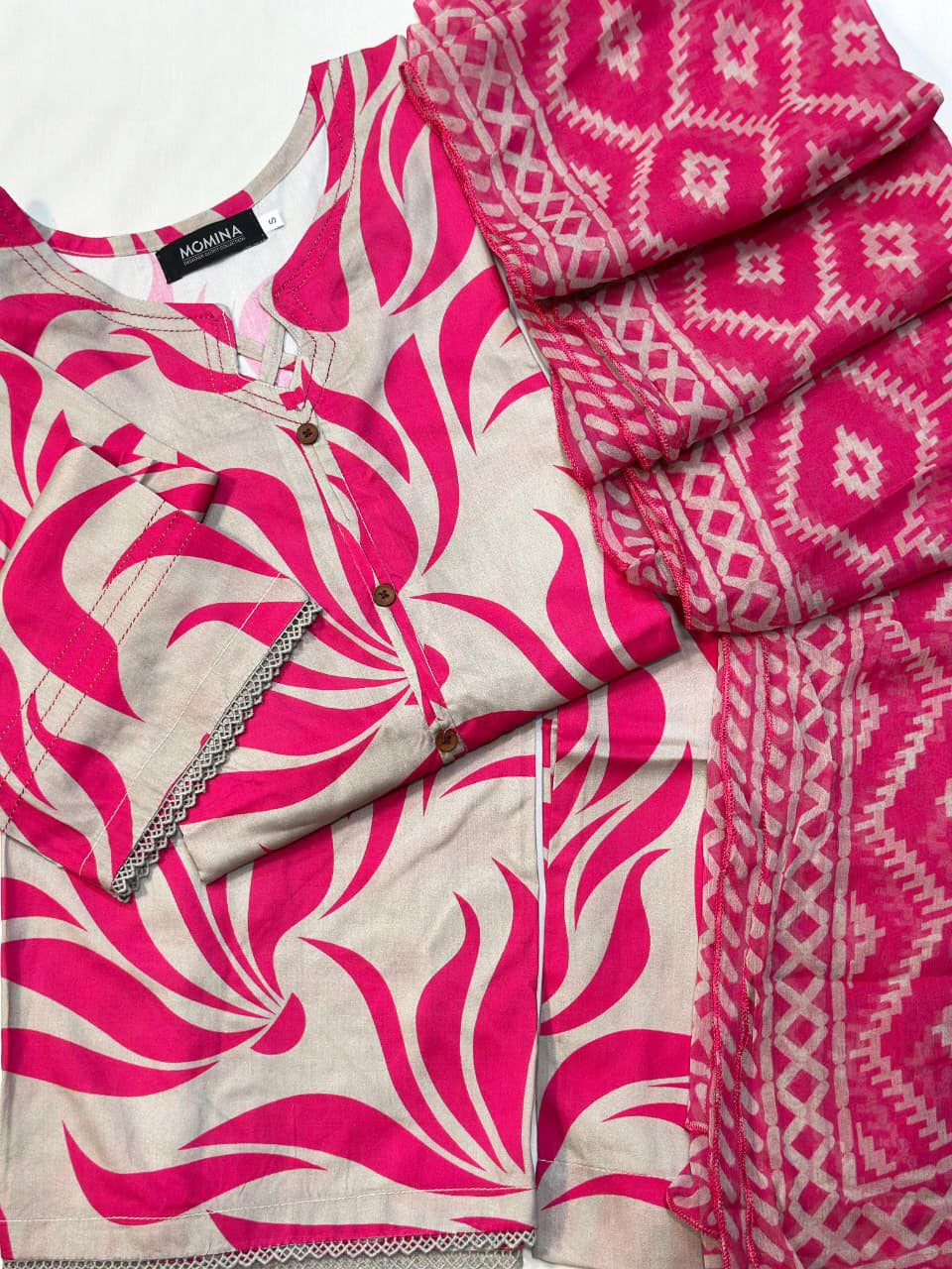 Pink & Off-White Winter Slub Linen Casual 3-Piece Suit