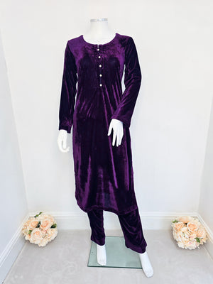 Purple Winter Velvet Plain 2-Piece Suit