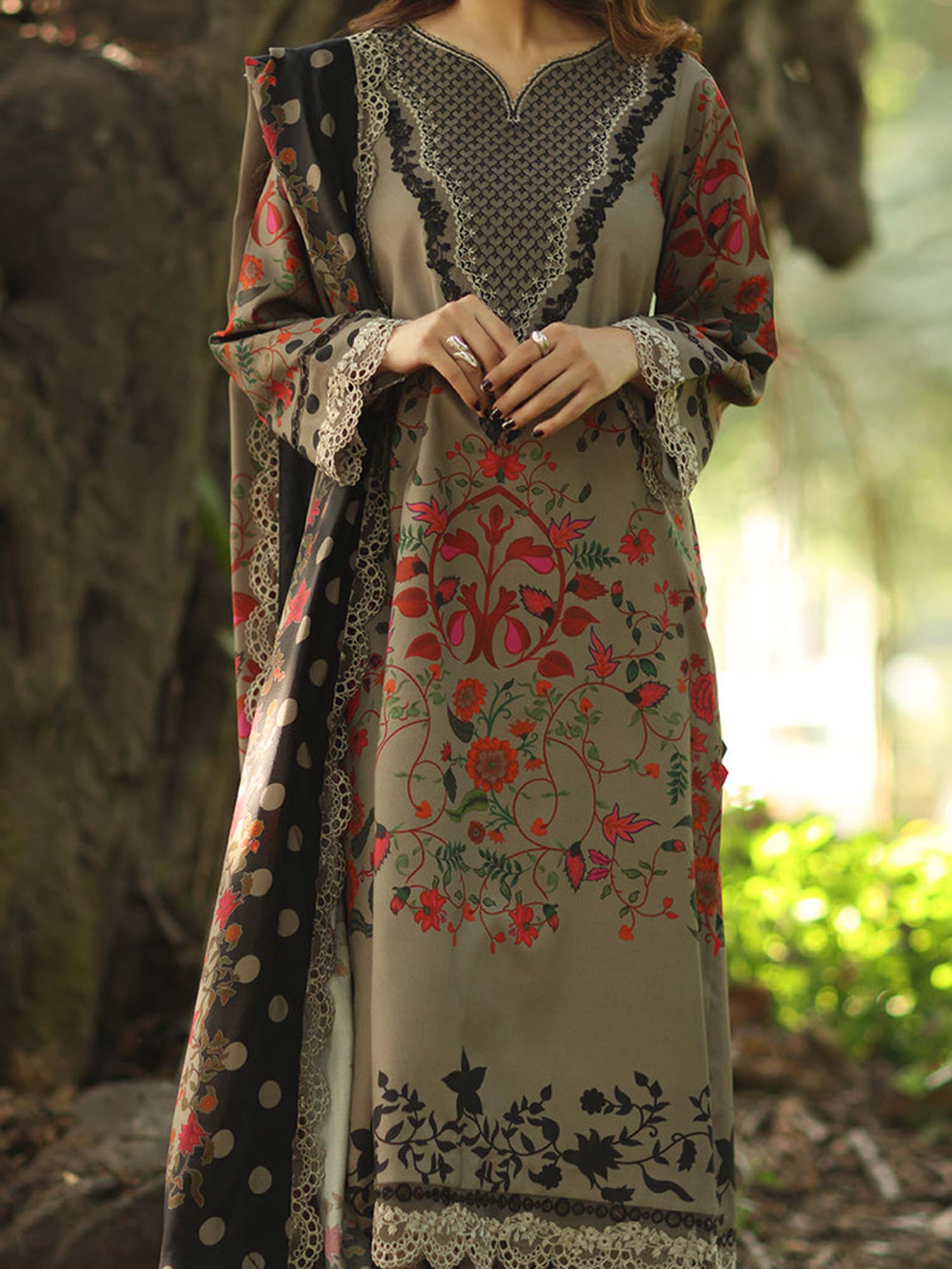• Embroidered Printed Staple Shawl 2.50 Metre