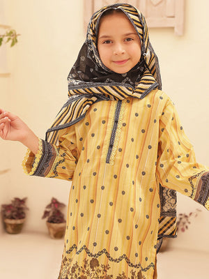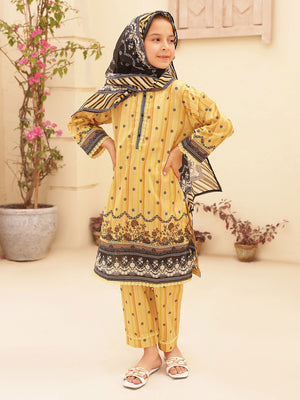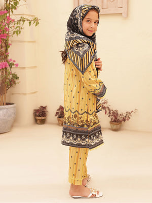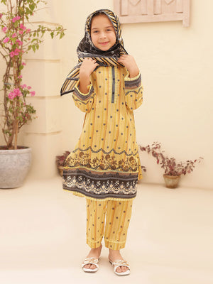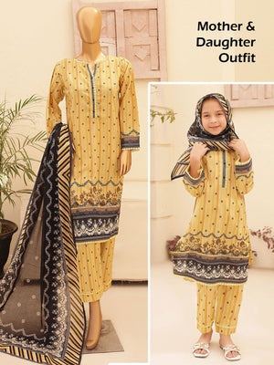 Mother-Daughter Lawn Casual 3-Piece Suit - Yellow