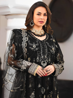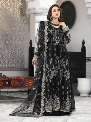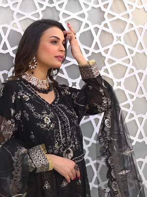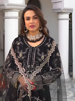 Zahra Rubab Black Khaadi Net 3-Piece Maxi Suit