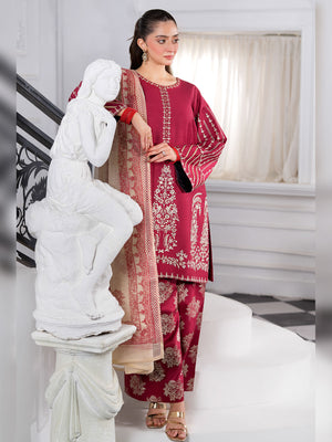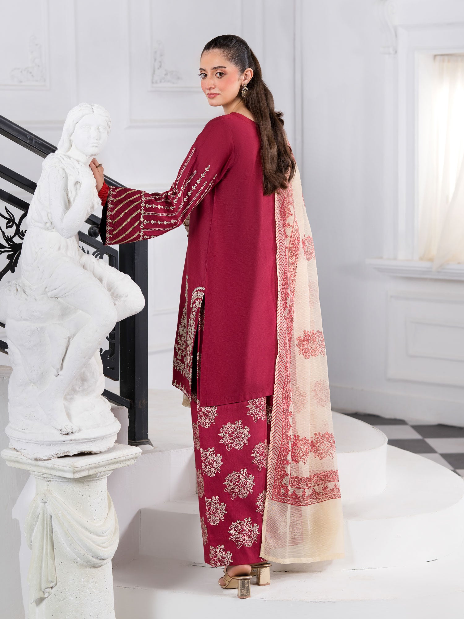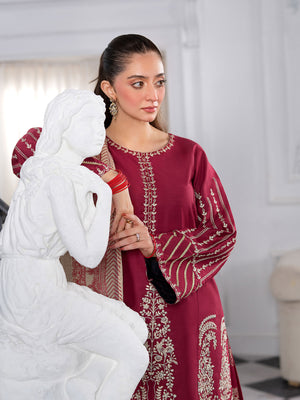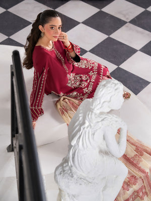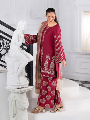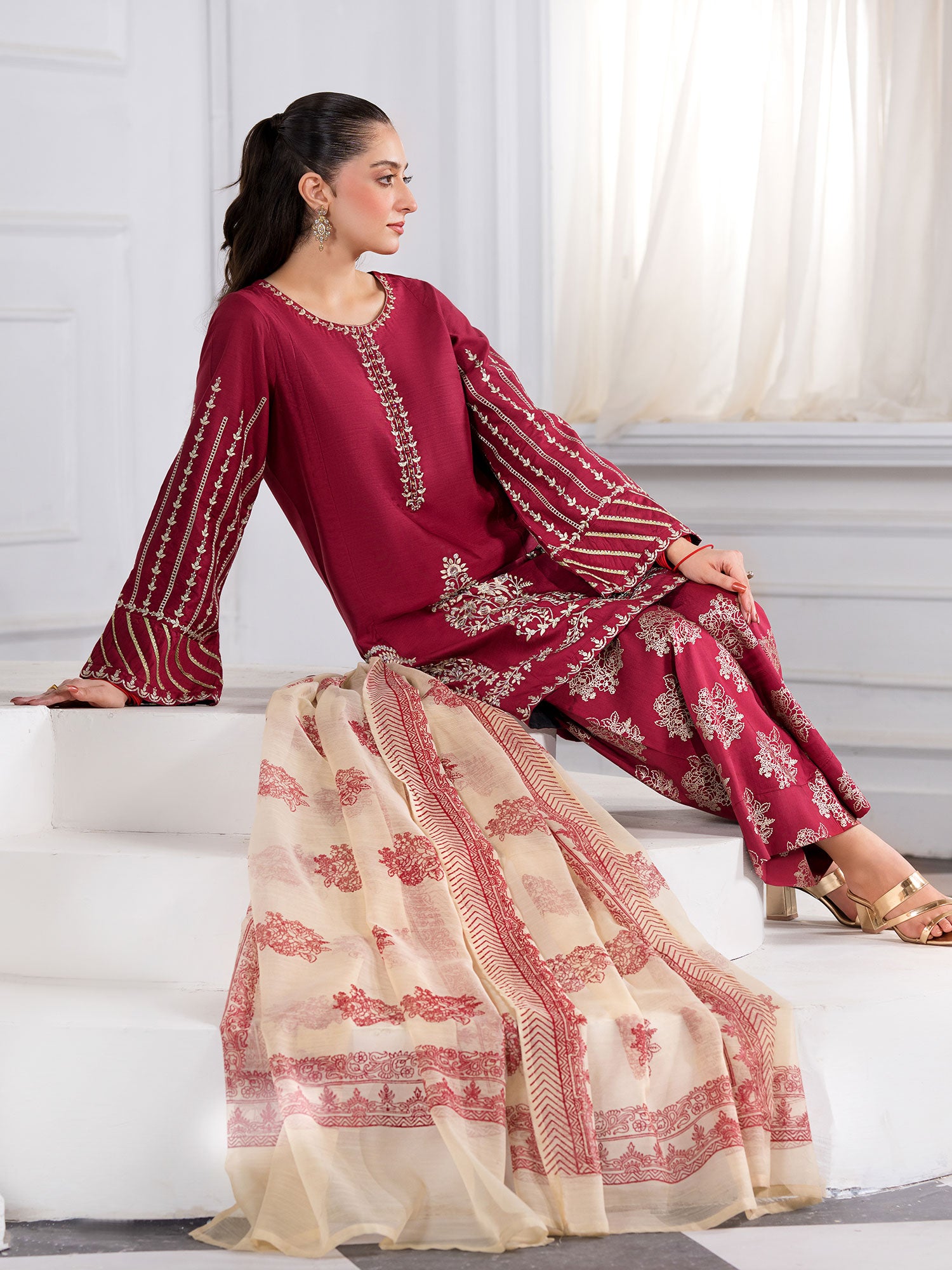 Heera's Embroidered Viscose 3-Piece Suit - Vintage Ruby