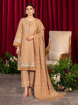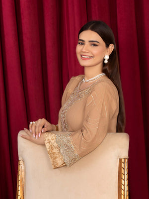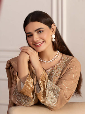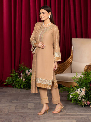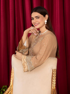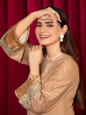 Heera's Gold Linen & Velvet Suit with Pashmina Shawl