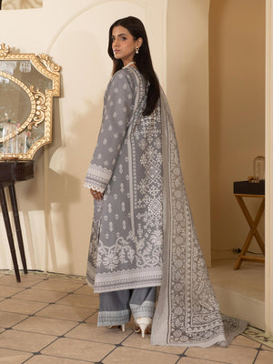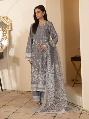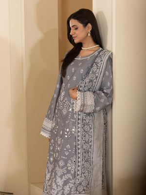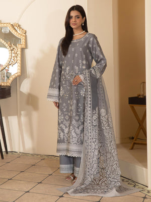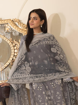 Heera's Grey Embroidered Airjet Cotton 3-Piece Suit