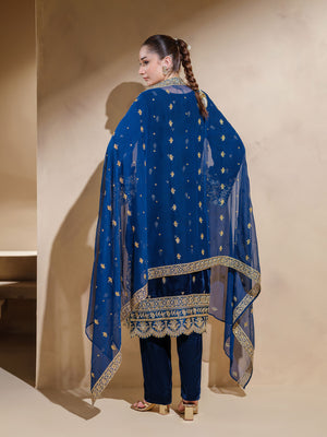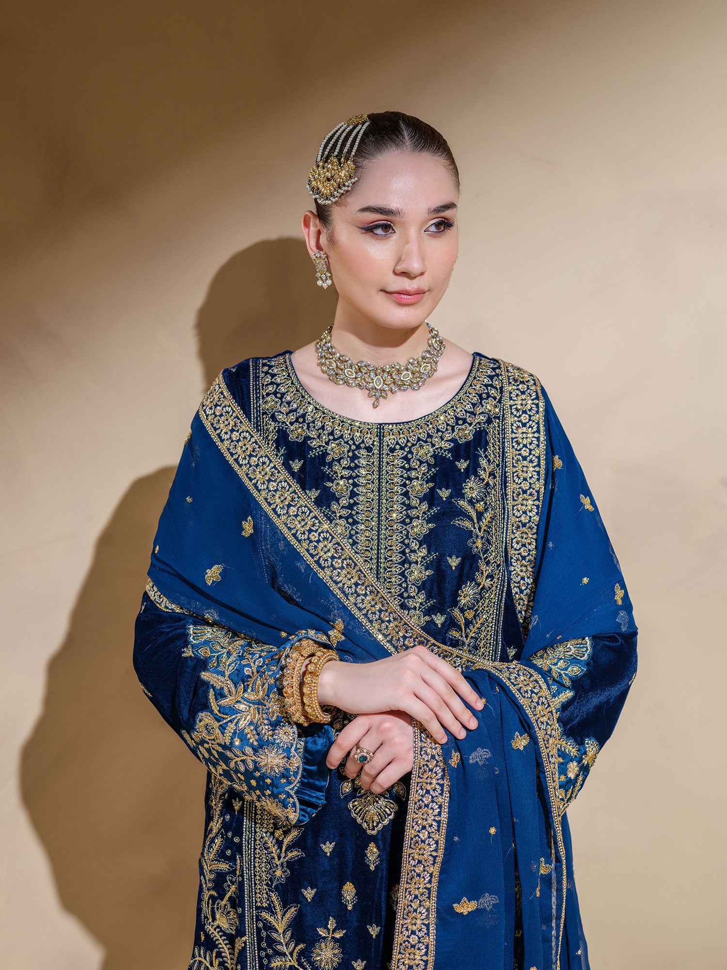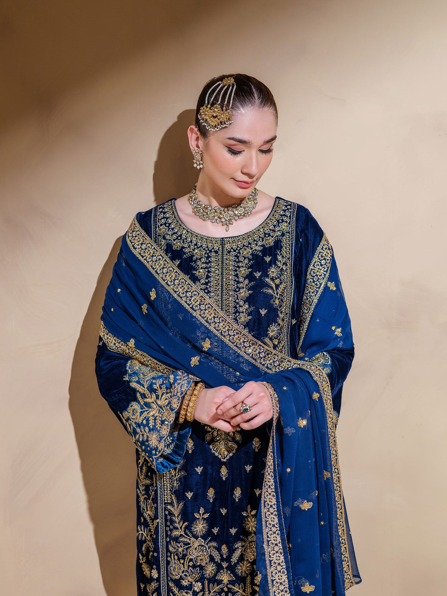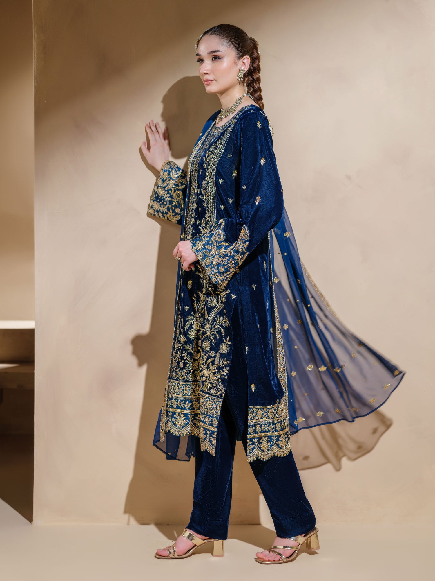Heera's Premium Velvet 3-Piece Suit - Veluto Blu Reale Velvet