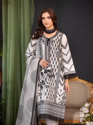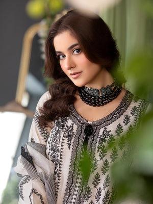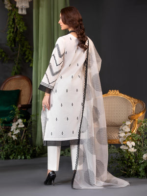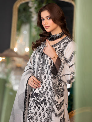 Heera's White & Black Luxury Embroidered 3-Piece Suit