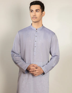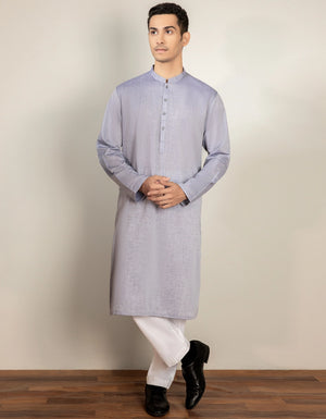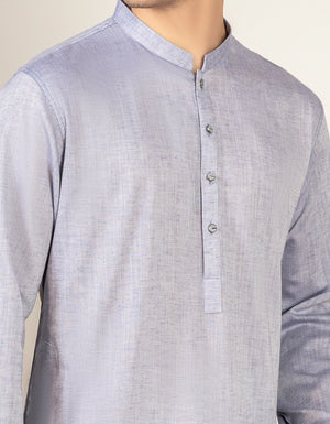 J. Mens Light Blue Cotton Casual Plain 2-Piece Kurta + Trouser