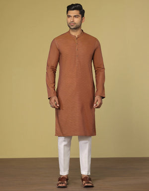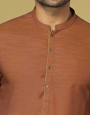 J. Mens Rust Brown Cotton Casual 2-Piece Kurta + Trouser