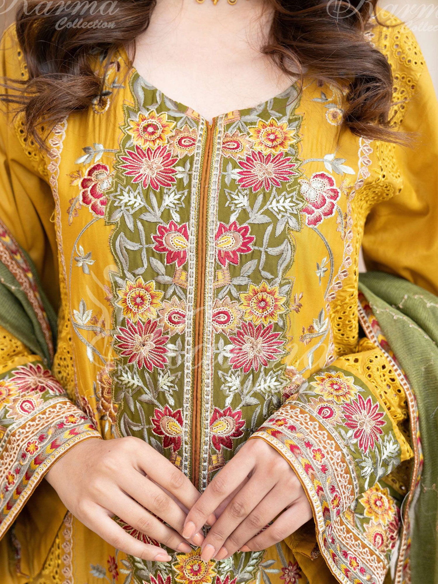 Karma Collection "Naqsh" Mustard Cotton Embroidered Suit (KC1356)